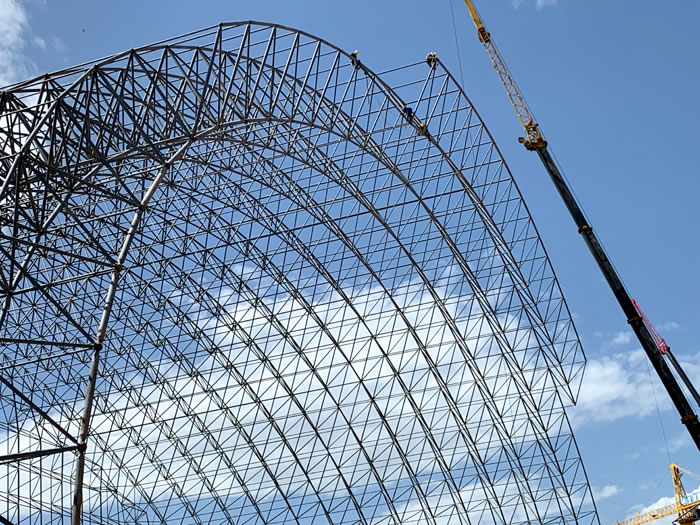 (2)网架加工前应对现场尺寸进行复测,确认无误后方可进行加工、安装;网架制作、运输、安装应遵守《空间网格结构技术规程》JGJ7-2010、《钢网架资阳螺栓球节点》JG/T 10-2009、《钢网架资阳螺栓球节点用高强度螺栓》 GB/T 16939-2016、《资阳钢结构资阳工程资阳施工规范》 GB50755-2012、《资阳钢结构资阳工程施工质量验收标准》 GB50205-2020。